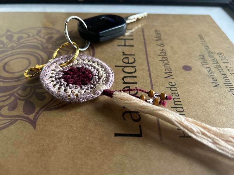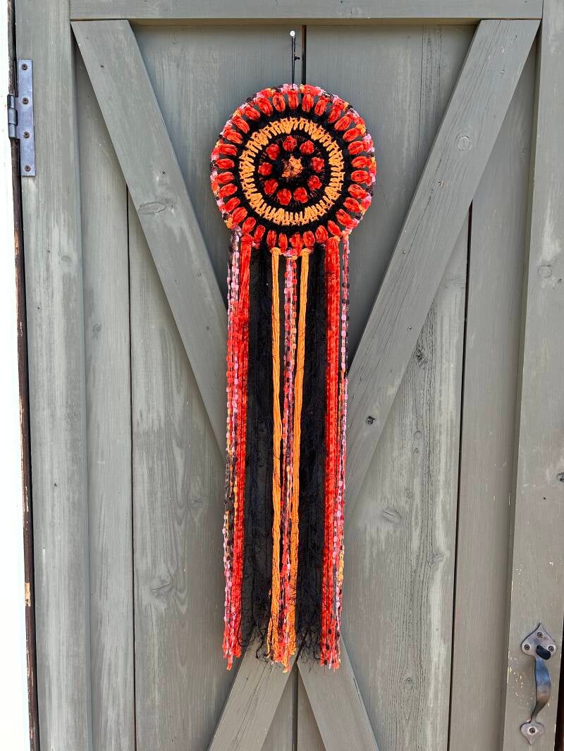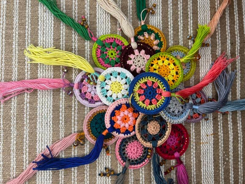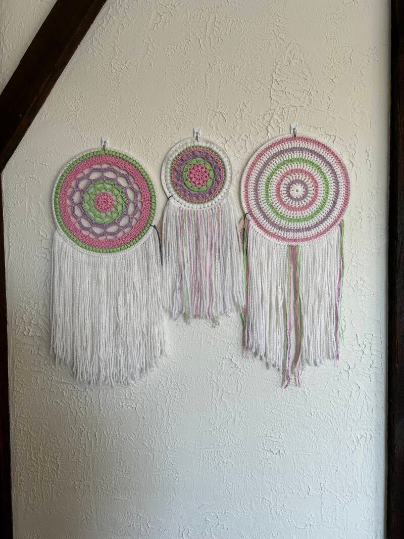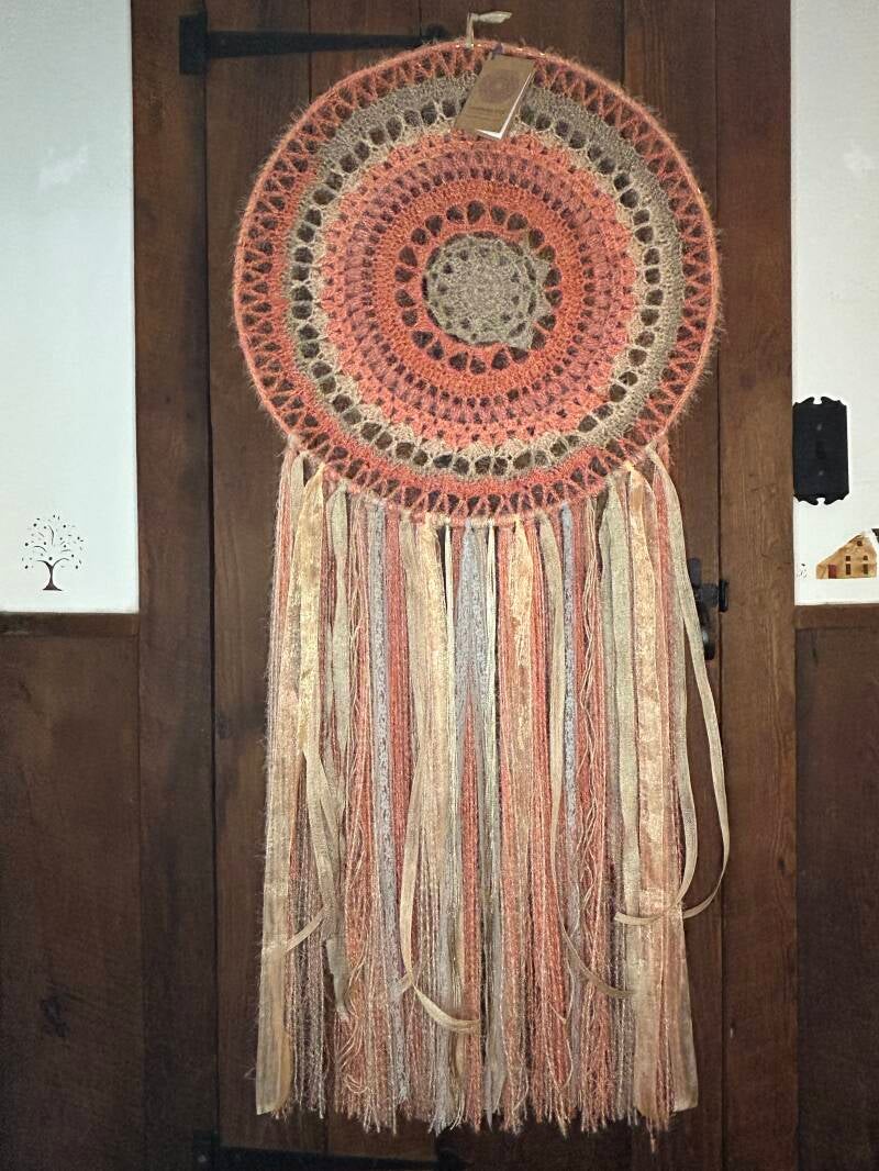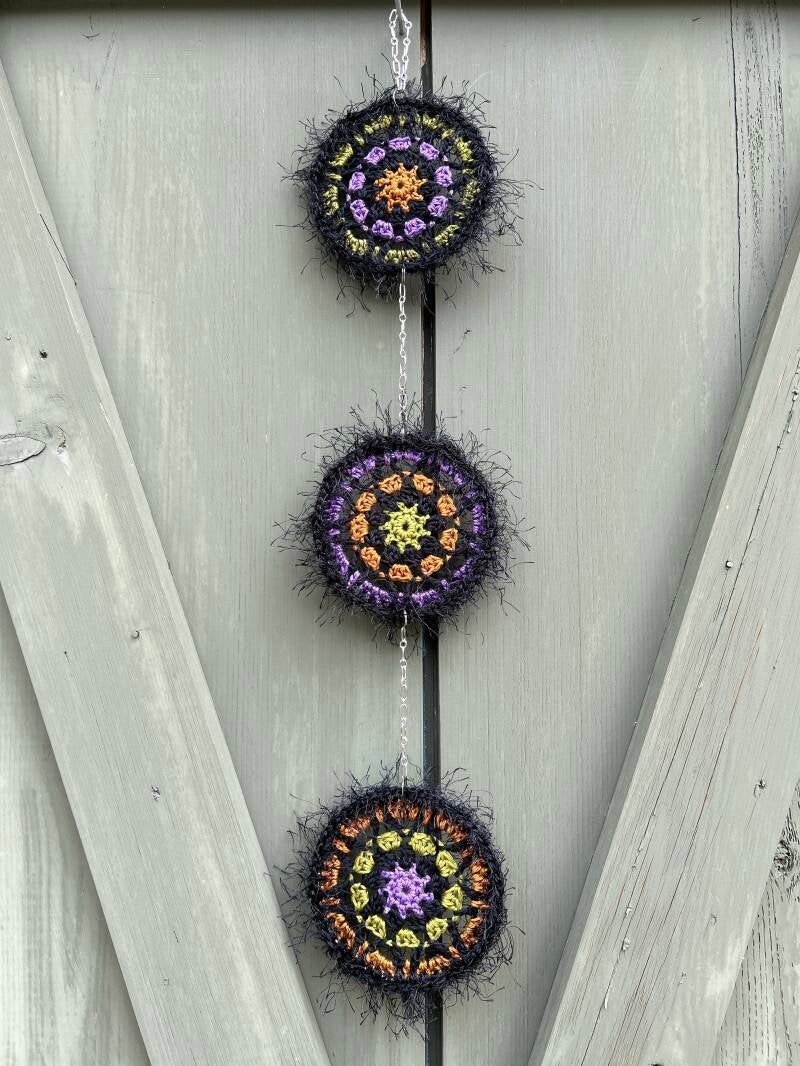 Each mandala I create is unique. They all begin with a color selection. From there I begin in the middle, letting the design evolve as each row is crocheted.